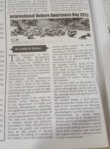 Today 3rd of September is a day for set aside for vultures in the Gambia, and the Head of National Parks and wildlife, is doing a radio broadcast live on YouTube,highlighting the assignment carried out by ourselves and the importance of vultures. This is ahead of international vulture awareness day on Sat. The 6th of September.